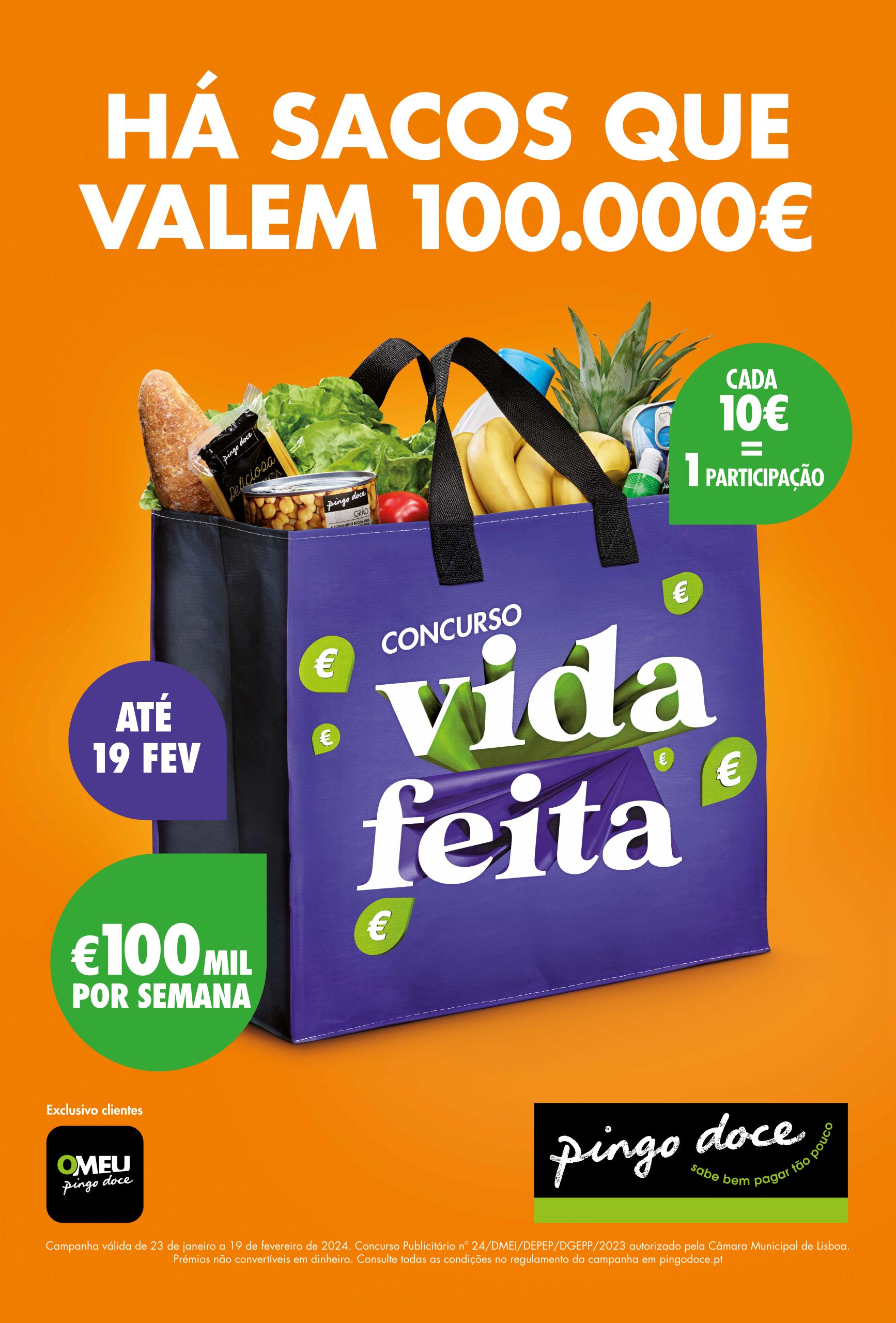 Para começar 2024 a tirar despesas do caminho, o Concurso Vida Feita do Pingo Doce sorteou semanalmente €100.000 entre os seus clientes que fizessem €10 em compras. O que é o mesmo que dizer que, com um simples saco de compras, qualquer pessoa se habilitava a resolver boa parte da sua vida. Foi o que aconteceu na campanha que fizemos – em que, pela primeira vez, alguém entrou num stand de automóveis para pagar um carro com um ananás.